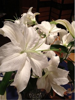 お家のお花。カサブランカと胡蝶蘭。どちらも真っ白。『浄化』なのかしら。気分的には、すでに紫なんだけど。お花に語りかけていることは、ひとつ。もし、目に見えないものが見えるなら、一番にお花の妖精が見てみたいって。