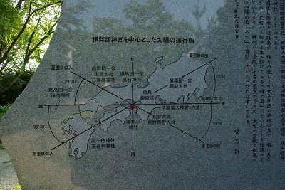 日本の名だたるパワースポットの要として位置するところ。 境内にある「陽の道しるべ」というモニュメントに添えられた説明の石碑より。