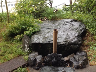 今日は一日小雨が降った。そのせいか、水琴窟の音色が一際涼しげに響いていた。砥部町の開花亭にある水琴窟。とめに使っている鬼瓦。湯釜の文様。その下の花はひまわり