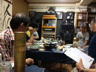 テーマアルバムは原信夫とシャープス&フラッツの「デューク・エリントンに捧ぐ」紅白歌合戦の演奏や美空ひばりの専属バンドとしても有名な日本を代表するビッグバンドだ。youtubeを見ると、昭和の良き時代がよみがえって懐かしい。このバンドでセカンドテナーを吹いていたのが土佐清水市 竜串出身の西村昭夫さん。59歳の若さで亡くなったが、シャープス&フラッツ退団後、西村昭夫インプレッションを結成し、一時は松山でライブハウス「サテンドール」を開いていたそうだ。参加メンバーは11名+欠席投句5名こんな感じで、食べながら飲みながら語りながら、Jazzを楽しみながらの句会です。俳句に俳画をつけてもらって、大満足