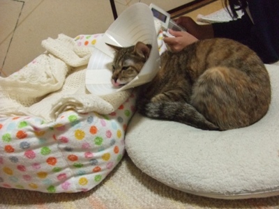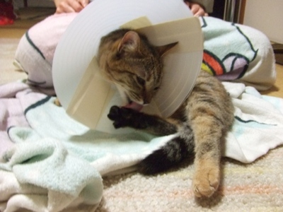 獣医さんに 絶対に 取らない様にと言われましたので・・・。