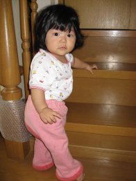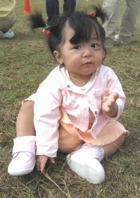 さきほど公民館の子育て広場に行ってきました。運動会のプログラムは 1.ラジオ体操 2.玉入れ 3.ボーリング 4.スプーンリレーでした。20組来てたので10組ずつに分かれて競いました。みいちゃんと私はAチーム。玉入れは、かごをしょって歩いているお姉さん(近くの大学の栄養科の学生さんがお手伝い)のあとを追いかけて、玉を入れるというもの。2回やってどちらもBチームが勝ち。ボーリングペットボトルに少量の米が入ってるピン、でも意外と倒れない。みいちゃん1本だけ倒せました。またBチームの勝ち。スプーンリレースプーンに卓球の球を入れて、向こうにいるお姉さんの後ろを通って帰ってきて、次の人のスプーンに球を移すというもの。他の子はほとんどお母さんが手を添えてスプーンを持っているのに、みいちゃんは1回も落とさず自分で持って行きました。私はきらちゃんを抱っこしながら横を歩いてたので、手を添えてやる余裕がなかったせいもありますが。これも残念ながらBチームの勝ち。ということでAチームだけ賞品(首にかけられるボールペン、かな?)をもらってました。うーん残念。眠そうなきらちゃんこのあと横抱っこしてたら、計測に行くときに寝ちゃいました。終わってから身長体重の計測。ちょうど7月に計ってから3ヶ月たってて。みいちゃんは身長2cm伸びて、84.8cm体重もやっと少し増えました。10.2→10.6最近よく牛乳を飲んでくれるようになったからかな。この調子で増えて欲しいものです。きらちゃんの増え方がすごい。身長62.2 → 70cm体重7400g → 8340g3ヶ月で8cm近くも身長が伸びるって、あり?もうびっくり。小さいとばかり思ってたのに。体重もしっかり増えて。みいちゃんが同じくらいのときより、ミルクも離乳食もしっかり食べたり飲んだりしてる気がするもんね。みいちゃん・・・ミルクonlyだったのに、「缶の表示の半分強くらいしか飲まない」って自分で日記に書いてありました。もともと小食なのね。じゃあ幼稚園行く頃には、きらちゃんが追いついて、双子みたいになってたりして