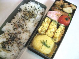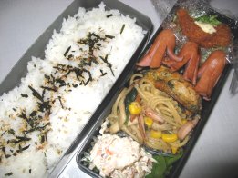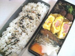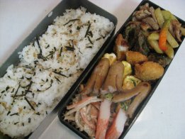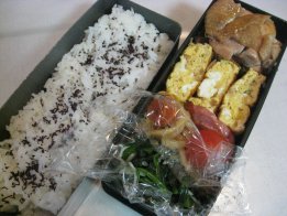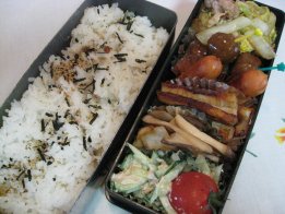 昨日大阪出張から帰ってきて、そのまま忘年会だったパパ。おみやげは蓬莱のぶたまんでした。妹からアンリ・シャルパンティエのマドレーヌやフィナンシェのセットが届いて、甘い系ばっかりにならないように頼んだので。アンリのフィナンシェは大好き。Aちゃんありがと~。今日は昼から車で宇部に日帰り出張だけど、普通にお弁当。・ご飯(昆布サンド)、ゆかり・鶏の照り焼き・なめたけ入り卵焼き・焼きうどん・ミニトマト・ほうれん草としらすのおひたし焼きうどんは今日下二人のお弁当に入れるため。風邪もなんとか落ち着いたので、バザー委員会の反省会に行ってきました。最初の1時間はほんとに反省会だったので、下二人が暇でいたずらばかり。お弁当のことばかり考えてて、おもちゃ持っていくの忘れてたもんね。・・・ああ疲れた。大人のお弁当、配達がなかなか来なかったので、先に食べさせました。届いてから一緒に食べ、お菓子も少しいただいて。今日と明日は個人懇談があって帰りが早いのがわかってたので、ちいちゃんが先に家についちゃうと鍵がないからと慌てて出ました。するとちょうどちいちゃんが帰るところで校門で会ったので一緒に帰りました。