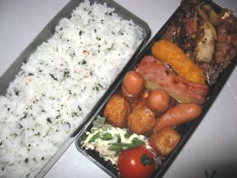 今日は朝からネット買い物&検索にあけくれてました。珍しく英語(iKnow)もやってない・・・・わかめご飯・人参の豚肉巻き(しそ風味)・コーンフライ・ハムのパイナップルソース添え・ウィンナ・さつま揚げ・ツナサラダ、ミニトマト豚肉巻き、今日は豚肉の下味にゆかりをちょっと振ってみました。あとはいつものようにみりんとしょうゆ1:1で味付け。買い物話は別記事に。