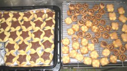 最近、休日は10時ごろまで寝てるちいちゃんですが、この日は8時に起きて掃除をしたり輪飾りを作って飾ったり、すっかりパーティモードでしたおみやげに渡すアイスボックスクッキー、昨日一緒に生地作りをしました。チェックや渦巻きなどの形に仕上げるのは私がしてから冷凍。朝、一緒に切ってオーブントレーに並べて焼きました。星型は牛乳パックを蛇腹に折って星型にして作りました。ピンクはいちごジャム入り。食紅は天然のだとあんまり濃いピンクになりませんでしたがケーキはこんな風に。10本も刺すのもなんだし、かと言って1本大きいのってのも変だし、やっぱこういう場合は数字ろうそくがいいですね。いろいろ料理作ったりばたばたしてたら、11時にお友達4人到着した頃、まだ掃除も終わってない状況天気もよかったのでとりあえず外で遊んでてもらって、ひかちゃんに手伝ってもらって掃除。クレーンゲームを使ったくじ引き、黒ひげ危機一髪(ミッキー版)、ハム太郎のグラグラゲームなど、景品をかけていろんなゲームをして、皆楽しんでたみたい。もうすぐピアノ発表会なので、ミニ発表会も。パーティ記念撮影(逆光で失敗)私の作ったパッチンどめやリボンゴム、皆喜んでくれて、すぐに使ってくれましたこの写真ではわかりにくいですが。料理は写真撮る暇もなかったけど、えび天むす、サンドイッチ、唐揚げ、マカロニグラタン、ミニトマトという感じ。ケーキやお菓子を食べて、また外でしばらく遊んだ後、クレープも。1人3枚ずつくらい食べられるようにいっぱい皮を焼きました。クレープはひかちゃんのときにもやって好評だったので。いちご、缶みかん、パイン、チョコスプレー、生クリームを用意して、自分で包んで食べるスタイル。夕方は雨が降ってきたので、DSの間違いミュージアムとかいうのを、2人組×3組で対戦してやってました。ひかちゃんは遊んでばかりいる訳にもいかないので、途中から算数の勉強もしつつ。それぞれお母さんが迎えにきて、1人1人帰っていき、お向かいのあーちゃんだけが最後まで残って小屋裏にあがったりして遊んでました。お昼のおにぎりなどの残りがかなりあったので夕飯はたこ焼きをプラスしました。夕飯にたこ焼きなんてウチでは珍しいかも。上二人、「今日はいいものばっかり食べてるよね」とかなり喜んでました。それにしても、一日中台所で何か作っているような日でした。ちょっと疲れが溜まってたのか前夜から喉が痛み始めてましたが、少し咳も。いつもは子供からうつされるのに、自分だけ風邪ひいてしまったようです。子供にうつさないように早く治さなくちゃ。