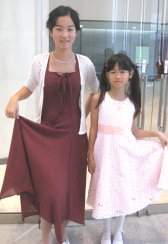 ピアノ発表会でした。ひかちゃんのドレスはオークションで手に入れ、ちいちゃんは前のでいいというので前のドレスの裾あたりにバラを付けただけと今回低コスト路線です。^^;ちいちゃんのフォーマル靴は買ったけど。髪に付けるものはワインレッドのベルベットのリボンを買って、ひかちゃんにはバレッタ、ちいちゃんにはリボンゴムを手作りしました。こういう格好するとめちゃくちゃ大人っぽく見えるひかちゃんですが、ちいちゃんのまねして裾を持ち上げちゃう姿はまだ小学生だなぁと笑えます。さて肝心のピアノ演奏。ちいちゃんの『渚のアデリーヌ』はビデオ撮ってたら写真撮りそこねました。緊張して頭が真っ白になっちゃうことがある~というタイプなので、以前途中で止まってまた最初から弾きなおしたりさんざんだったこともあるちいちゃん。小さなミスが少しあったものの、なかなかよく弾けていて、終わった瞬間ほっとして涙が出ました。ほんとによかった。次に二人で連弾の『羞恥心メドレー』ほとんどミスなく、息もばっちり。会場にほぉ~やるなぁという空気の流れる感じでうれしかったです。そしてひかちゃんの『トルコ行進曲』途中で小さなミスが3回続いたりしたので、本人は失敗したぁ~っと落ち込んでました。どうも完璧主義なところがあるみたいで。確かに前の発表会みたいにノーミスでばっちり、という訳ではなかったけど、勉強勉強の日々のせいで練習がそんなに出来なかったんだしね。演奏が止まったりといった致命的なミスはなく、なかなかうまく弾けたと思います。家に帰ってテレビにつないで再び鑑賞会したところ、「そんなに悪くなかった気がしてきた~」って、ようやくほっとしてました。みいちゃん、きらちゃんはパパとサティをウロウロしたり、会場の外で走り回ったり。1時から4時すぎまで、待ち長かったよね。パパもご苦労様でした。