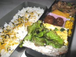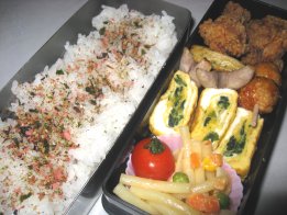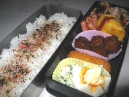 今日は雨です。昨日は公園でたっぷり遊んだおかげで下二人ともお昼寝してくれたんだけど、今日は無理かなぁ。・おにぎり3種・肉団子・八宝菜(昨夜残)・しらす入り卵焼き・エビグラタン(冷食)・ブロッコリ肉団子、ほとんど肉だけのレシピを使ったら、なんだか固くなってしまったようなやっぱりきざみネギとか入れたらよかったなぁ。単に揚げすぎ?mi☆kiさんに教えていただいた、100均のシリコンカップ、夕飯の残りものを入れておき、朝にそのまま電子レンジで火を通してからお弁当に詰められるので、とても便利です。洗って何度も使えるからエコにも役立つし。昨日ひかちゃんが卒業式の案内プリントを持って帰りました。卒業式は16日。小学校に行くのはあと10日なんだって。ひかちゃんが卒業式に着る服は、私自身が小学校の卒業式に着た落ち着いたピンクのスーツを勧めてみたら気に入って、それを着るそうです。一度クリーニングに出しておかないと。さて私は何を着ようかしら。