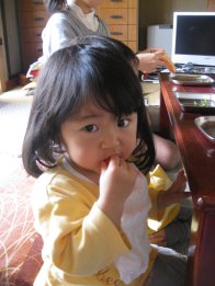 19日、ピアノが終わってから新幹線で実家へ。少し出るのが遅くなった上に小倉駅までの道が一部渋滞してて、ヒヤヒヤ。ダッシュで改札を通って、焦っていた私はなんと博多行きのホームに上がってしまいました。気がついてから慌ててエレベータで降りようとすると、もうホームに乗る便が間に合わない~と泣きそうになりましたが、通りすがりの方が気がついて、「ベビーカー持ってあげるから赤ちゃん抱っこして!」と手伝ってくださり、無事に乗ることが出来ました。急いでいるときほど注意深くしなくちゃいけないですねさてこの日は午前中は実父に車で送ってもらい、ダンナの実家へ。出していただいた大きないちごを喜んで食べるきらちゃん。最近パズルにはまっているきらちゃん。パズルしているときだけおとなしいので、携帯用のパズルを持って行ってました。姉にどこか行ったときのおみやげとしてもらったと思うんだけど、キティちゃんの3枚セットのパズル。1枚が25ピースくらいかな。とても重宝しました。「こんなに小さいのに上手に出来るね~。そういや○○(パパの名前)もこういうの好きやった。」と、パズルするところを見て喜んでもらえたようです。パパ実家は1時間くらいいてさようならし、バスで移動して実母と待ち合わせていつも行くダイエーのゲームコーナーへ。ひとしきり遊んでから実家へ戻りました。夕方には上二人の大の仲よし、いとこのYちゃんが来ました。空手の道場である実家。生活スペースは狭いのでYちゃんと上二人の3人娘は道場に布団を持って上がって寝て、道場の仕事で来ていた妹といとこのまあくん、私と下二人は布団いっぱい敷いて寝ました。