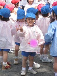 みいちゃん、きらちゃん、幼稚園に入って初めての遠足でした。場所は桃園公園のわんぱく広場というところ。とにかく遊具がいっぱいで楽しい公園で、上二人が小さい頃もよく連れてきました。みいちゃんが2歳くらいの頃にも一度来たような気がするけど、すごく久しぶり。みいちゃんはいつもどおり幼稚園バスに乗って幼稚園へ行き、幼稚園に集まった年少さん&うさぎ組さんと一緒にバスで。年中さんからは公園まで歩くそうです。私ときらちゃんはお友達の車に乗せてもらってお弁当持って直接公園へ。お遊戯『アブラハムには七人の子』を楽しそうに踊ったあとのみいちゃん。この後、年少さんから親子一緒にゲームを。グループ別に大きなシールを先生に走って張りに行き、戻ってきてお友達とタッチ交代というもの。チューリップ組だけ多いので、男の子グループと女の子グループに分かれました。私はみいちゃんときらちゃんの手を引いて走りました。待っている間に、みいちゃんが仲良しさんがいたみたいで手をつないだりしてて、そのお母さんに「ウチの子、いつもみ○○ちゃん、って言ってるんですよ」と声をかけてもらってうれしかったです。みいちゃんは家でまだぜんぜんお友達の名前出ないから知らなかったわ。ゲーム終わったあとはおみやげのお菓子をいただいて、それぞれ遊びに。まだ年中、年長さんがゲーム中だったので公園の遊具がすいてて、みいちゃん、きらちゃんはたくさんの遊具に目移りしながら、大喜びで遊んでました。たくさん遊んだせいかお弁当もほとんど残さず食べ、また遊びに。みいちゃん「じゃあ遊んでくるね~」って一人で行ってしまいました。後からきらちゃんと行ってみたら、ほんとに自由に楽しんでました。自立してるなぁ。ちいちゃんが年少のときはママから離れなかったと思うけど。ひかちゃんはこの幼稚園は年中からだから、比較できず。D51の中で楽しむきらちゃん。男の子並みに機関車に興味があるみたい。きままに歩き回り、遊ぶきらちゃんに振り回され、私はくたくた。1:30頃にお友達の車にまた乗せてもらって帰りました。帰ったら寝るかと思えば、先に帰ってたちいちゃんがビデオ見てて、そのまま下二人一緒に見てしまい、そのまま。なんだか頭が痛くなってしまいました3時ごろ生協さん。みいちゃんは公園に行くちいちゃんについて遊びに行き、きらちゃんも外で遊びたいみたいで勝手にサンダル履いて外出てるし休む間ないったら5時ごろ家庭訪問で、ちいちゃんの先生が来てお話。ひかちゃんが3年生の時の担任の先生で、そういえば3年前はこの子がお腹にいたんですね、っていう話になりました。いやぁそう考えるとなんか不思議な。結局夕飯前になって二人ともお昼寝。疲れた一日でした。