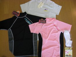 上二人の宿題をみるので忙しかったりでブログお休みしてましたが、今日13日から順に書き込んでます。去年私とダンナと下二人のラッシュガードは買ったけど、上二人には買ってなくて。既にかなり真っ黒なちいちゃんですが、もう季節も終わりに近づいたせいか安くなってるので買っておくことに。今日届きました。もう子供用でなく女性用でいいだろうと、手前の2つピンクのMサイズをちいちゃん、ブラックのLサイズをひかちゃんに。1790円にて破格の価格■カラー・サイズ豊富■スポーツシーンをオシャレに!■ラッシュガード■半袖■メンズ■レディース■水着とコーディネート■VAXPOTあとひかちゃんにはインナーショーツをはかせるべきよねと。どんな水着にもフィットするスタンダードタイプ■10%OFF■ellesse(エレッセ)■ハイレッグビキニショーツ■インナーショーツ奥にあるのは送料合わせに買った私のTシャツ。背中の大きなロゴマークがポイント!■ONEILL(オニール)■レディース半袖Tシャツ■女性用■ロゴT■カジュアル安かったから期待してなかったけど、袖に刺繍があってなかなかいい品でした。靴下がプレゼントで付いてました。昨日自由研究のまとめを仕上げたら明日プールに連れてってあげるって約束してたので、今日はまた三人連れて児童プールへ。(ひかちゃんは昼から部活)ちいちゃん、さっそくラッシュガードが使えてよかったです。ちいちゃんに似合うピンクだったので満足なようです。ヤフオクで手に入れたピンクの浮き輪も今日がお初。これで浮き輪の取り合いせずにすむと思ったんだけど、この写真ではみいちゃん用に一緒に入り込んだきらちゃんを、みいちゃんが怒って出そうとしてます。一緒に入ってかわいいとこを撮ろうと思ったのに・・・日曜にひかちゃんが洗面所で滑って鼻の下を打ち、そのときは鼻血がいっぱい出たのでそっちに気をとられてたんだけど、どうやら歯を打っていたようで。まだ歯が痛むというので今朝歯医者さんに電話して飛び込みでみてもらいました。幸いヒビなどは入ってなかったけど、少し動いてるということで歯をしばらく固定するということで、両側の歯との間に接着剤を入れられました。みいちゃんみたいに神経が切れてたら永久歯なだけに大変。この1週間くらい歯を安静にしておかないといけないそうです。気になると触ったり刺激をあたえたりしちゃうほうなので、絶対に刺激を与えないように言いきかせてます。おせんべい食べちゃだめ、って言うとなおのこと食べたくなるらしいけど。無事治りますように。