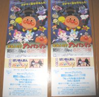 アンパンマンの映画のチケットが当たりましたmiruku*さんが懸賞で当てたというのを見て、急いで検索してみたらアイフルホームでやってるのを見つけて応募したんです。この映画で出てくる新しいキャラの一人がきらちゃんと同じ名前だから、見せてあげたいなって思って。親子ペア券が2枚も。でも上二人もアンパンマン好きなのよね~。毎週日曜の早朝にやってるアンパンマンを録画してあるんだけど、必ず見るし。4人で映画館入ってくれるなら別にいいけど、きらちゃんは私がいないと難しそう。あと1枚、オークションでも探してみようかな。調べてるうちにアサヒ飲料がずっとアンパンマンものを懸賞に使ってることがわかりました。三ツ矢サイダーを何本も買ってるのに、ポイントマーク集めてなくてショック。これからしっかり集めて応募しようと思います。狙いはアンパンマンのミニ冷蔵庫。パパが前からミニ冷蔵庫を欲しがってるんですよね。生協の荷物の届く水曜には冷蔵庫がいっぱいで入らなくなるから・・・気持ちはわかるけどわざわざミニ冷蔵庫を買うなんて。だから懸賞でね