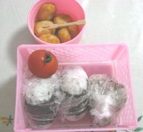 本日2本目。メモ帳にほとんど書いてあったのにアップするの忘れてて、こんな時間です。今日はひかちゃんが登校日。午後から部活なのでお弁当でした。・おにぎり・牛カルビ(冷食)・ミニウィンナ・卵焼き・海老フライ・ブロッコリおにぎりの1つは甘い系が入ってると喜ぶひかちゃんのために、コーンおにぎりにしました。ミニトマトは入るスペースがなかったし、食べる時間があんまりないからいい、とひかちゃんが言うので。お弁当といえば昨日ちいちゃんが帰ってきて、初日のお弁当、バスで酔ってとうもろこししか食べられなかっただって。もちろん、誰かスタッフの人に食べてもらったりする知恵もなければ、腐るから先に捨てるということも出来ないちいちゃんのこと。次の日まで荷物に入ったままで服に腐った匂いがついたんだとか。ったく、困った人です。それにしても、いつも車で移動するときにDSも出来るくらい強くて、いままで車酔いしたことなかったのにね。今回は5,6年生だけ先に出発で、お向かいのあーちゃんがいなかったから不安があったんでしょう。「テント、さいあく~。もう一生テントには泊まりたくない!」って。雨の音がうるさかったり、虫がいっぱいの中でトイレしないといけなかったり、都会っこには大変だったようです。それでも、「登山が一番楽しかった~、景色がすっごいきれいやった」「魚初めて釣ったよ」「竹細工で入れ物とお箸作って、流しそうめん食べた」とかいろいろおみやげ話を聞かせてもらいました。楽しかったけど、「やっぱ3泊4日は長かった。ちいちゃん、早く家に帰りたかった」だって。去年までは2泊3日、そのくらいがちょうど良かったんだろうね。今日は部活早めに終わったとかで、ひかちゃん喜んで帰ってきました。帰ってからついダラダラしてしまったけど、夕飯後から頑張って宿題やってます。きらちゃん、お昼寝すると夜が遅くなるので頑張ってはやめに夕飯食べさせたんだけど、寝てしまい。1時間しか寝かさずにお風呂に入れて起こしたんだけど、やっぱり・・・まだ起きてます。お風呂にいれずに寝かせたらよかったのかしら。ただいま11時25分。絶好調で遊んでるし。最近夜1時コースなのでキツイわ。明日、あさってはみいちゃん登園日です。