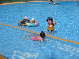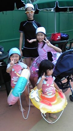 この日はみいちゃん、午前中は幼稚園。でも最近特に昼寝もしないしと、以前から幼稚園のお友達(バス亭が一緒のSちゃん)を児童プール一緒に行こうねって行ってたのに行けてなかったから、お昼食べてから行くことに。Sちゃんママと1歳半くらいの弟Tくんも一緒に、車で行って、プール近くの友達の家の駐車場に、電話して止めさせてもらいました。結局3時~4時半くらい。でも暑くて日焼け止め塗ってたけどかなり焼けたみたい。きらちゃん、ラッシュガードの袖の線が腕にくっきりついてしまいました時間が遅かったせいか人も少なくのびのび遊べました。みいちゃん、帰るよって言ってもなかなか帰ろうとせず「もう1回入ってくるね」って。帰ってから「今日はすっごく面白かったぁ~」ってご満悦でした