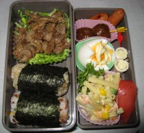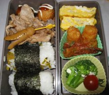 今日は晴れる予報ですが、今のとこ曇ってます。・いなり寿司・おにぎり(パパ)・チキンステーキ・ミートボール・ウィンナ・ミニトマト(ひか)・トマト(パパ、みい、きら)・だし巻き卵・ちくわのマヨ焼きいなりはいつものように揚げを昨日炊いておいて。いなり寿司ばっかり5つも入れたら飽きるかなとパパは1つわかめおにぎりにしました。チキンステーキはおろし玉ねぎにしばらく漬けてから焼きました。そうすると美味しいというレシピを見たので。付け合せにしめじも追加して炒めました。時間がなかったので、絡めるタレは安直に生協のステーキソースで。今日は小学校でまずバザー委員会。そのあと参観です。歴史の授業だそう。パパが下二人を迎えに行ってくれるそうなので、参観の後の懇談会も参加予定。その前に先週生協を頼みそこねたので冷蔵庫がスカスカ・・・。買い物に行かねば。