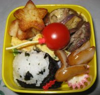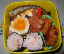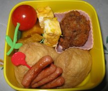 今日もよく晴れて暑い日になりそうです。・いなり寿司・スコッチエッグ・あおさ入り卵焼き・かぼちゃの煮物・ウィンナ・ミニトマトスコッチエッグは昨夜のハンバーグの種を残してウズラ卵に巻いて、昨日作っておきました。いなりの皮も昨夜炊いておいて。昨日はひかちゃんの宿題につきあって1時半でした。社会はそれぞれ1つの国を割り当てられて壁新聞にするというもので、ひかちゃんはソマリア担当。アフリカの角と言われるところにある最貧国。海賊が出るということで話題豊富なので書きやすいとは思うんですが。下書き提出ってことでなんとか形にしてやれやれと思ったら、実は数学も提出があると。円の弧や弦にからんだ角度を求めたり、証明したりするとこらへん。「1日2ページずつやっときなさいよ」って言われてたけど提出はないと思ってしてなかったら、急に提出って言われてあせってということらしい。「先生って部活がある人のこと、考えてないんよ~」とこぼしつつ。確かに・・・だって授業午前中だけやって帰るだけなら余裕で出来るだろうけど、6時まで部活あってくたくたなのに、夏休みの宿題とは別に授業でまた宿題が出るなんてハードすぎですよぉ先生方~6日提出の読書感想文がまだ終わってないので今日明日も夜遅くまでかかりそうです。キツイとは思うけど、がんばれがんばれ。今日も登園日で下二人いなくて今静かです。ちいちゃんがちっとも朝起きられなくなって、困ったものです。今日は昼頃に歯医者さんで銀歯を入れてもらってきます。