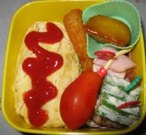 曇りがちの日でした。時々ぽつぽつとにわか雨も。・ちらし寿司・鮭ムニエル・ミニウィンナ・おからナゲット・ゆで卵の味噌漬け・ミニトマト・かにかま(パパ)彩りちらしの素を混ぜました。ほんのりピンク色。ひかちゃんには食べやすいよう細巻きに。ゆで卵、昨日余ったので味噌とみりんを1:1に混ぜたものに漬けておきました。でもあんまり味しなかったって。味噌が少なかったのかな~。ひかちゃん、午前授業&午後部活の生活の上、夏休みの宿題がてんこ盛り。いつもより大変な生活のような気がします。なのに、本人はせっかくの日曜にダラダラと過ごして、6日締め切りの読書感想文が進まず。そして夜になってから、実は明日締め切りの世界の飢餓についての作文があると言い出し。結局1時過ぎまでかかってやったみたいで、今朝起きられず、久々にパパの車出動。まだまだどっさり残ってる宿題を知ってるだけに、こっちが落ち着かないです。さて今朝は下二人連れて児童プールに。ちいちゃんは昨日お友達一家に一緒にアドベンチャープールに連れてってもらって疲れてるので、家でお勉強しとくということで(終わったらWiiしてただろうけど)てこてことベビーカーを押して往復、時々プールに膝下入って相手してやって2時間。帰ってお昼食べたら私が疲れて寝てしまいました。だのに下二人、お昼寝しないし・・・ちいちゃんとWiiしたりカキ氷食べたりしてました。明日、あさっては登園日です。
