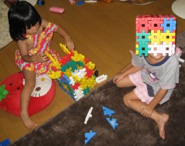 今日は下二人は幼稚園。月1回だけ土曜日午前にあるんです。たぶん運動会の練習かな。ひかちゃん・・・予定表ちらっと見て「昼から部活ね」と思ってたら9時ごろ起きてきて「なんで起こしてくれんかったん!?」午前中土曜セミナーで授業があったんだって。昨日は私、あまりにも疲れてたので上二人より先に寝て、起こしてとも頼まれてないし。だいたい授業あるなら、8時すぎに下二人を起こしに行ったときになんで起きないかなぁ?オープンスクールとやらで授業参観の人が14,5人くるらしいところに遅刻していくのは、恥ずかしいだろうけど仕方ないねさて今日はウチで毎日使われているニューブロックのご紹介。最近レゴよりこっちがメインになりつつあります。夏休み中、家での遊びはほとんどコレでした。たいてい居間じゅう広がってます。レゴと違って踏んでも痛くないのはありがたい。こんな風にコマにもなります。けっこうよく回る。ウチは最初にオムツのポイントを溜めて小さいセットを一つ手に入れたのが始まり。よく遊ぶのでダンナが一番大きなセットを買ってきて。最近きらちゃんが家や列車の形なんかを作って、その中に人の形のを入れて、なんかぶつぶつ独り言言いながら遊んでるのが見てて面白いです。みいちゃんはアンパンマンの『ゆうれい船をやっつけろ』を見てから、こんな船を作るのがマイブーム。最近セットを買い足してみました。すぐに他のとまぎれてますが。30%OFF!学研もっとニューブロック「カラフルパーツセット」【10/07/31 KD】いままでなかった、オレンジ、紫、水色が入ってました。”おもちゃのベルハウス”さんは送料がお安くていいです。ついでに花火もいろいろ買いました。80%OFF!花火オンダCNY-20「超人気夜遊びクラブ」【10/08/14 TM】80%OFF!花火セット花火HKH-TZ「はいから花火」【10/08/13 Ki】9月中旬にご近所でもう一度やる予定なので。8月末に1回やったんですが、きらちゃんが花火大好きでどんどんやるんです。はらはらするけど、ほんとに喜んでやるので見てて楽しい。喜んでもらえるかな。
