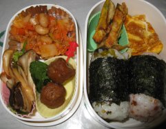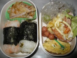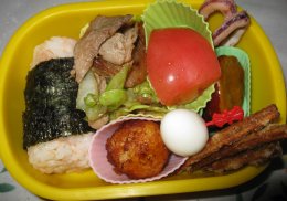 うっかり更新忘れてました。・鮭おにぎりorご飯・豚肉のしょうが焼き・トマト・鶏だんご&うずら卵・いかぽっぽ・大学芋・ごぼうのサクサク揚げ久々に生のしょうがを買ったので。全部すりおろして、残ったものはトレーにラップしいて薄く延ばして冷凍。固まってから割ってフリージング袋に入れて保存です。冷奴にかけるには辛すぎるからチューブのほうが好きなんですが、しっかりした味にしたいときにはやっぱ生のほうがね。しょうが焼きは酒、しょうゆ、しょうがで下味を付けてしばらく置いてから焼いて、焼き色が付いてから砂糖を入れて絡めます。次の日エフクラブがあるということで、昼までせっせと台所の掃除してました。普段なかなかコンロ周りを掃除できてないので汚れがたまってて。コンロの汚れに重曹と洗剤かけてラップしてしばらく置いてから、プラスチックのスプーンでこそぎ落としました。昼から生協に買いだしに。ついでに自宅用の買い物もしてたら、行き返りの時間合わせて1時間かかりました。生協はお魚が美味しいので、この日はあじを買って帰って夕飯に塩焼きしたら、子どもたちが喜んで食べてました。