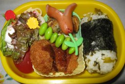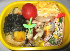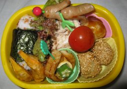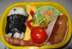昨日は暑いくらいだったのに今日はひやっとしてます。今の室温24度。半そで体操服で登園のみいちゃんが「さむい~」とぶつぶつ言ってました。昼間は暑くなるだろうけどね。・三色丼・鮭フライ・里芋とこんにゃくのうま煮・ウィンナ(パパ、みい、きら)・ミニチーズ(みい、きら)・冷凍ミニゼリー(みい、きら)・ナポリタンコロッケ(パパ)一見、品数少ないけど、里芋をむくとこからだったんで時間がかかってぎりぎりでした。里芋のうま煮は昨日から作っておけばよかったな。たぶんひかちゃんに入れたのは、いまいち味がしみてなかったし。^^;里芋、こんにゃく、鶏肉、厚揚げ、にんじんが入ってます。今日は昼から小学校バザーのため、くじの商品の下見に行ってきます。明日から修学旅行のため、6年生だけ今日早く帰ってくるので、ちいちゃんには鍵を持たせました。帰ってきたら荷物の点検しなくちゃ。ひかちゃんのときは任せてたと思うけど、なんかちいちゃんだとイマイチ不安で。