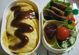 朝夕は涼しいけど昼間は夏に戻ったみたい。運動会の練習で日焼けしそうと思って、下二人はバス乗る前に日焼け止めを塗っておきました。顔と腕だけだけど。・オムライス・豚一口ステーキ・オクラ(味ポン&マヨ)・ミニトマト・大学芋パパが出張でいないし、残りご飯が溜まってきてたのでオムライスに。上にかけるソースはひかちゃんはデミグラスソース、下二人はケチャップにしました。今日は中学校は運動会の予行です。で、明日が本番なんだけど、今日終わってから部活あるそうです。さて今から明日のお弁当の献立を考えて買い物に行って来なくちゃ。
