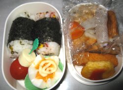 快適な朝です。昨夜はちいちゃんとみいちゃんの布団を子ども部屋に戻したものの、端っこに寄せたベッドはそのままに、私の脇のみいちゃんが寝てたとこに布団1枚敷いて、きらちゃんにそこで寝ないか聞いたところ、すんなりとそこで寝てくれました。いつもきらちゃんに蹴られる~とダンナが文句言ってたのでよかったわ。でもいつまで続くか・・・・おにぎり・おでん・コーンフライ・ナゲット・ゆで卵・ミニトマト・キャンディチーズ食欲の秋にはいったらしいひかちゃん、昨日のお弁当が足りなくてお腹空いて困ったそうで、今日から2段弁当に戻しました。涼しくなるとやっぱり食べたくなるおでん。昨日から仕込んでおけばよかったんだけど眠くて寝てしまったので。お弁当には味薄いかもしれないけど、夕飯には美味しく食べられることでしょう。みいちゃんも涼しくなって食欲戻ったようで、今朝は白パンに卵はさんだのを2つ食べて、さらにシリアルも少し食べてました。きらちゃんは卵はさんだのをあげようとしたら「クリームがいい」と泣き出したので、生クリームはさんだのをあげたら、少し残してます。昨日は自転車で”ドラッグストアコスモス”という店に初めて行ってみました。小学校バザーでお茶やジュースを買うところを探すのに、ちょっと価格調査と思って。肉や魚はないけどほとんどスーパーみたいなところ。ものによって、TRIALより安いものもある感じ。100円で売るジュース、69円で仕入れられるならまあまあいいかも。小学校近くのスーパーと値段比べなきゃ。ちょこちょこと買い物して帰りました。