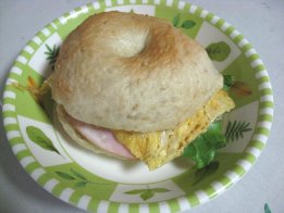 夏休み前に賞味期限すれすれのモルトエキスを安く手に入れたこともあり、かなり何度も作って最近ようやく慣れてきました。まだしわっちゃうけど。^^;個人的にはローストしたくるみ入りが一番お気に入りなんですが、手軽なのにいい風味が出るゴマ入りをよく作ってます。今朝も。ベーグルって素材はシンプルで安いのに買うと高いから、自分で作れるとなんかお得感ありますよね6:30に起きるので、朝に生地を作り始めたパンって上二人の朝食には当然間に合わないんですが、下二人はぎりぎり間に合うか合わないか。9時ごろ起きるダンナだけ確実に焼きたてを食べてます。今日はグラノーラに牛乳かけて食べてたみいちゃんですが、私が食べてたら食べたくなったようで、半分食べました。