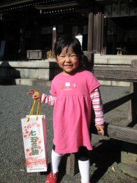 七五三参りに行ってきました。みいちゃん以降、ちょっといい普段着くらいの姿で行くようになってしまいまして。^^;まぁ、神社で穢れをはらって、祝詞をあげていただくことに意味があるかなと思ってます。ひかちゃんは友達と遊ぶ約束があるとかで朝から出かけてたので、ひかちゃん抜きで行きました。一緒だったら年賀状用の写真が撮れたのになぁ。帰りに『ココス』に寄ってお昼を食べました。パパが下二人が大変だからと外食行くのをしぶってて、家族で外食ってすごく久しぶり。ドラえもんを見てるときCMでいつも見てた『ココス』、1年前くらいに近くに出来たので、一度行ってみたかったんです。最近のCMでやってた100%ビーフのハンバーグを食べましたが、とっても美味しかったです。キッズプレートの量もちょうどいい具合で、下二人完食+私のハンバーグを少し。待っている間も塗り絵をもらって塗ったり、神社でいただいた千代紙で遊んだり、いい子にしてました。塗り絵はもちろん、ドラえもん。スプーンやフォークにも使われてたり、プレートに絵があったり、喜んでました。小学生以下は誕生のある月だとお祝いしてくれるとのこと。ちいちゃんが今月誕生日なので、デザート(バニラアイスかシフォンケーキでアイスに)と、ドラえもんマグカップをいただき、写真を撮ってもらってあとでカードに付けていただきました。ドリンクバー、かなり種類があった上ブレンドも美味しく、充実してて楽しめました。値段も手頃だったし、また行きたいなと思います。
