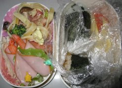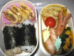 いいお天気だし暖かい。今日はちゃんとカーテン洗ったりしようっと。・おにぎりor混ぜご飯・クリームパスタ・ごぼうサラダ・サラダえびのハム巻き・ウィンナ・卵焼き(パパ、みい、きら)・りんご・ミニゼリー(みい、きら)・豚肉と野菜の炒め物(パパ)ふと気がついたら今期最後のお弁当でした。ミンチが少しあったので、玉ねぎのみじん切りと一緒に甘辛く煮付けたものをご飯に混ぜておにぎりにしました。パパはまぜご飯のままですが。平べったい麺の好きなきらちゃんのためにフィットチーネを買ってきたので、ベーコン、ブロッコリー、しめじを炒めたものとクリームソースをからめました。朝バタバタしてたらひかちゃんのお弁当に卵焼き入れるの忘れてました。どおりでスペースが余ると思った・・・^^;昨日ベッドに入って電気を消してから、きらちゃんが「明日のお弁当は~・・・」といろいろリクエスト。リクエストどおりにりんごを入れたらスペースがなくて、ゼリーはお弁当箱の外に付けました。きらちゃんを寝かしつけつつ少し寝たけど12時ごろ起きて、年賀状の作成をやってました。昼間になかなか進まなくて。ひかちゃん用には別にして欲しいと去年から違うバージョンで作ってるので、3時くらいまであれこれと。いつも通り、ネットで無料素材をいろいろ取ってきて、写真と一緒にワードに貼り付けて。だいたい出来たんですが、肝心の写真がイマイチなので、今日もう一度撮りなおすつもり。写真はソファに4人座らせて撮るんですが、なかなか4人ともいい表情で撮るのは難しいです。