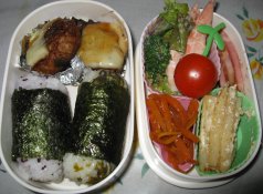 とてもいいお天気で暖かいです。・おにぎりorご飯・スイートポテト・ミニハンバーグ(パパ、ひか)・ミニトマト・ウィンナ・チーズ入りはんぺん・小あじのカレームニエル・いかぽっぽ・焼肉(パパ、みい、きら)冷凍の小あじ、お弁当にちょうどいい大きさです。解凍して塩コショウし、小麦粉とカレー粉を混ぜたものをまぶしてバターで焼いてます。スイートポテトを作ろうとサツマイモを圧力鍋で蒸したら柔らかくなりすぎて。小麦粉をかなり混ぜたのでスイートポテトもどきって感じ。^^;冷凍のミニハンバーグが2個しかなかったので、下二人には細切れ牛肉少し残ってたのを焼きました。明日生協の日なので、冷蔵庫掃除兼ねたお弁当。昨日、ちいちゃんと一緒に髪を切りに行きました。ちいちゃんは20cmくらい切りましたが、長すぎたので前から見た感じは変わらないくらい。髪も洗いやすくなり、朝もとかすのに10分以上かかることもなくなったそうでよかったです。私は10cmくらい切ったかな?肩より少し下くらい。くくらなくても邪魔にならない程度に。ばさばさした感じだったので、これで少しすっきりしたと思います。パパが下二人を連れてイオンのゲームコ-ナーでガラポンをしたら、きらちゃんが1等を当てたって。Wiiのスーパーマリオの古いタイプのソフト。もちろん子どもたちは大喜び。ちいちゃん、そんなことしてる場合じゃないんだけどなぁ楽天レンタルでスポットレンタルしました。1枚10円というのでつい。送料があるけど、それでも4枚借りて350円くらいだもんね。スポットだと借りたいなって時に借りられるからいいわ。月決めだとせわしいし。今日は『ベンジャミン・バトン』見ました。長いけどつい見入っちゃう映画でした。あとは子どもたちと見ようかと『ヤッターマン』『アバター』『崖の上のポニョ』を借りてます。