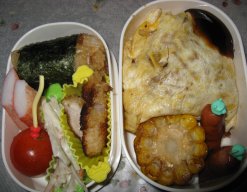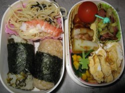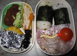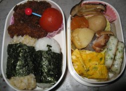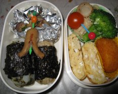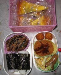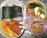 今日から中学校と幼稚園は平常どおりでお弁当です。でも小学校は始業式なのでお昼まで・・・。一番面倒なパターン。・おにぎりorご飯・卵焼き・ウィンナ・黒豆・エビフライ・リボンパスタのチーズ焼き・牛肉と大根と里芋の香味煮・ミニトマト今年初めてのお弁当ですが特に変わったところもなく。^^;今日生協の日なのであまり買い物してなくて、昨日の残りの香味煮に朝、里芋を追加して煮込みました。お昼は焼きそばを作って、ちいちゃんと食べました。ちいちゃんの中学入試が15日とせまりました。昨日は17年度の過去問使って、家で模擬試験。本当の試験と同じ時間にやってみました。出来は・・・びみょー。もう少し算数取れてもいいはずなんだけど、なんか計算間違いが多い。国語と算数だけ、昨日見直しもしたんだけど、理科と社会がまだなので今からです。