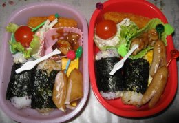 雨が降ってますが、寒さは少し弱まったみたい。・おにぎり・しらす入り卵焼き・ウィンナ・コーンフライ・ごぼうサラダ・ミニトマト・焼き鳥・ミニゼリー今日も下二人のお弁当のみ。作ったのはおにぎりや卵焼きくらいで、あとは市販品を温めたりで。おにぎりの1つは最近定番になった”ゆかり&チーズ”下二人、とっても気に入ったみたいで、家でご飯にかけるときも同じようにしたがります。昨日は結局少し家事したら熱が上がってしまってずっと7.4度ぐらい。今朝はやっと熱下がりましたが、まだ咳はあるし、だるいのでなるべくのんびりする予定。今日きらちゃんの4歳の誕生日・・・子どもの誕生日にケーキが焼けないのは初めてのことです。まぁケーキ屋さんのケーキを食べたいパパは喜んで予約に行きましたけどね。注文票を見ると3680円・・・昨日おとといとお惣菜&パン買ってるし、早く元気にならないと家計がえらいことになりますやっぱ私は予防接種しとかないといけなかったかなぁ。