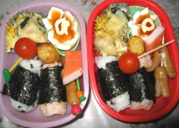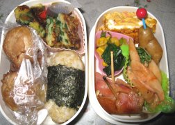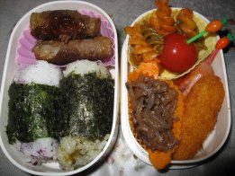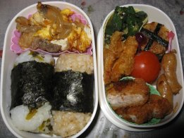すっかり寒さが和らぎました。このまま春になるのかな。・玄米おにぎりorご飯・肉巻きおにぎり・ちぢみ・アミ海老入り卵焼き・ウィンナ・ほうれん草とコーンのバター炒め・えのきベーコン・魚ソーセージのオーロラソース和え下二人・肉巻きおにぎり(みいちゃんだけ)・サンドイッチ(卵&ベーコン&レタス&チーズ)・ジャムサンド(ブルーベリージャム)・メロンパン・ウィンナ・えのきベーコン、ミニトマト肉巻きおにぎりとちぢみは、実は昨夜の残りもの。^^;肉巻きおにぎりはykcat98さんとこで見て、美味しそうでさっそく。オーブンで焼くので失敗なくていいですね。きらちゃん以外には好評でした。昨日はやっと一日中熱出ず。メロンパン作ったり、いろいろやってました。でも咳がね・・・。痰切りの咳でなく意味なく出る空咳に苦しめられてます。夜まず寝付くまでに2時間くらいかかり、夜中もほぼ2時間おきくらいに咳で起きてしまいます。ぐっすり寝たいよぉ~