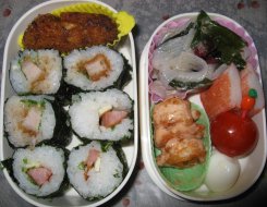 朝から小雨がしとしと降ったりやんだりしてます。・細巻き寿司・おにぎり(パパ)・かぼちゃコロッケ(パパ、ひか)・わかめとこんにゃくのサラダ・かにかま・えびマヨ・うずら卵・ミニトマト・ミニゼリー(みい、きら)ひかちゃん、今日はテスト後に部活があるのでお弁当再開です。体が相当重くなってるから久々の部活はこたえるかもね。^^;細巻きはトンカツ巻きとウィンナ&チーズ巻き。野菜はレタスとかなかったので水菜の柔らかいところをマヨネーズたっぷり付けて使いました。ウチはこんな細巻きの型を使ってます。★簡単に細巻き寿司が作れちゃう!「ギュッとポン!」細巻き型いちおうエンボス加工してあるけどラップ敷いて使ってます。そのほうがすぐ取り出して海苔巻けるから簡単です。久しぶりに図書館に行ってきました。いつも下二人を寝かしつける前に絵本を読むんだけど、時間が早いときだけ3冊、10時過ぎてたら1冊だけとかしてます。。今日は3冊は読みたがるだろうから早めにお風呂に入れないとね。