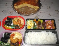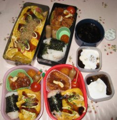 とっても暖かくてホットカーペットもいらないくらいです。・おにぎりorご飯・すき焼きの卵とじ・オクラの胡麻和え・長芋のバター炒め・かぼちゃ天・トンカツ・ウィンナ・ミニトマトorいちご昨夜すき焼きだったので残りを卵でとじて。長芋はバターで炒めたあとめんつゆをからめてます。手裏剣みたいに海苔で十文字にアレンジするのは、以前お弁当ブログでお世話になってたkarasinaさんのまね。実生活がお忙しくなられてからブログお休みされてますが、karasinaさんのお弁当ファンなのでいつか再開してくださったらいいなぁと思ってます。いちごが2粒だけあったので下二人のお弁当だけ入れました昨夜また熱が7.2と上がりました。朝はなかったので4つのお弁当を普通に作ったんですが、昼から7.5まで上がってしまいました。咳は出だしたらしばらく止まらないけど、そんなずっとではないし、元気になってきたつもりだったのに。タミフルあと2錠しかないのに熱があるとすごく不安。やっぱ動きすぎたかなぁ。今日ほんとは幼稚園の幹事会。見晴らしのいいホテルのレストランでお食事をさせてもらえるはずだったのに、ああ残念。昼からは公立中学の説明会も行くつもりだっだけどそれもかなわず。この土日、動けそうでもなるべく動かず(ってのが難しいんだよね~)治したいところです。