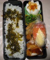 いいお天気でした。頭痛も昨日よりましになりました。・おにぎりorご飯(withしらす)・ごぼうサラダ・揚げ鶏団子・ちくわ磯辺揚げ・鮭ムニエル・ウィンナ鍋用のみつせ鶏団子を揚げて、焼いたネギと合わせてステーキソースを絡めました。頭痛もまだあるので市販品頼りのお弁当です。^^;残りご飯がいっぱいになってきてたので、オムライス弁当にしようと思ってたのに、パパが私がご飯仕掛け忘れたと思って仕掛けてました。^^;今日も昨日くらい頭痛かったら、お弁当なしで上二人はお金渡して、下はお弁当券を使ってとかもアリかなって思ってたんだけど、どんな状況でもお弁当作れってこと?まぁそこまで何も考えてなくて、気を使ったつもりなんでしょうけど。・・・ってことで夕飯をオムライスにする予定です。きらちゃんが今朝起きてこないので起こしに行ったら、熱い。測ったら38.3だったので幼稚園お休みしました。久々お休みです。明日、幼稚園で運動会バザーの集計作業とかあったのでどうしようかと思ってたら、昼からだんだん熱下がって、今は平熱になりました。疲れが出ただけだったのかな?よかったです。ほとんどテレビ見てのんびりしてます。