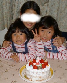 クリスマスケーキ、実はスポンジは買ってデコレーションしよっと思ってたんだけど、店に行ったらスポンジが売り切れで。^^;結局自分で焼きました。ローストチキンは市販品でしたけど(笑)デコ用の砂糖菓子(サンタ、きのこ)、チョコ(サンタ、プレート)はクオカで買っておいたもの。クリームたっぷりだったせいかいつもより美味しく感じました。ひかちゃんはジャージだったので写りたがらず。3人にて。ちょっとサプライズで、4人からママにメッセージとプレゼントがありました。ひかちゃんからのプレゼントは顔用コラーゲンパック。下3人からのはちいちゃんの作ったデコ作品でした^^きらちゃんからの「ありあと」がいいですよね*^^*普段も「ありがとう」って言えなくて「ありあと」って言ってるんです。かわいいから直さないし^^;