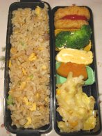 小雨が降ってます。・焼き飯・チキンナゲット・ブロッコリ・卵焼き・かぼちゃのレモン煮・カニ身入りグラタン昨日日曜におもちつきだった下二人はお休み。パパも午前休みとのことで、上二人だけお弁当でした。ってことでちょっと手抜きして冷凍の焼き飯を使って。我が家の年末恒例の贅沢、カニが金曜に届いて食べてたので、すこし置いておいたほぐし身をマカロニグラタンに入れました。ほんとは甲羅に入れて焼くと美味しいんだけど。下二人は雨で外で遊べないし、昼からずっとDVD三昧です。私も、昨日のおもちつきの手伝いが7:30~14:00。外に立ちっぱなしで忙しかったので疲れが取れないし、好きなようにさせてます。^^;