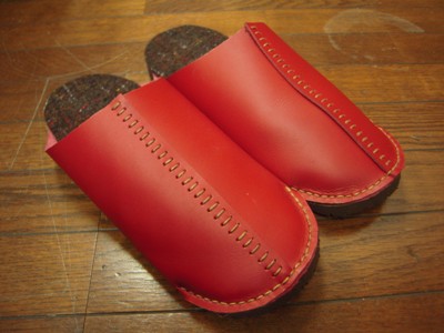昨日の靴教室で生徒Hさんが2足サンダルを完成させました! レッド&ブラウンの組み合わせの方が自分用、キャメルで手縫いを施した方はお友達用です。 お友達の足の計測をしたり、サンダルの製作途中で友達にフィッティングしてもらったりと、人の為に作るのは自分の靴を作るよりはるかに大変ですが、がんばってくれました! 昨日は午前・午後とグラインダーに向かっては底の接着をする、という作業を一日繰り返し、最後はさすがに疲れました~と言っていましたが、すごく素敵なサンダルが出来ました! 同じデザインですが、革の色を変えたり、少し型紙のラインを変えたり、フットベースのラインを変えるだけでかなり雰囲気が変わってきますね! お友達も喜ぶこと間違いなしですね(^-^)