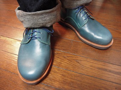 久々に自分の靴。 靴の製法はいろいろありまして、これはハンドソーンウェルテッド製法の中のヴェベルという製法です。ちょうど底の真ん中辺りから革を巻きこんで仕上げます。 ハンドソーンウェルテッドはまだまだ修行中。とにかく反復して体が覚えていくしかありません。 だし針の入れ方、やすりのかけ方、コテのかけ方、頭でわかっていても動作が付いていかないこともまだまだあります。 でも少しずつですが着実に前に進んでいるかな。