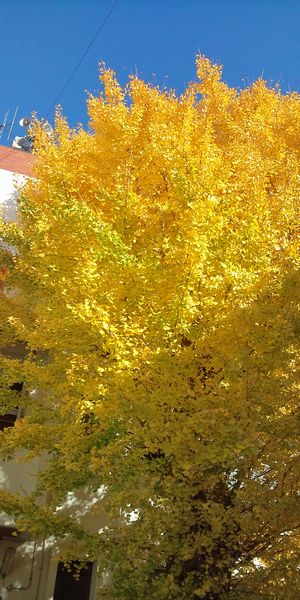 職場の庭にある大きなイチョウの木です今、とってもきれいな黄色をしていてキラキラ輝いていますイチョウの葉には、オスとメスがあるんですってね~?今日、初めて知りましたこの年齢になるまで知らなかったのは、ちょっと恥ずかしい。。。左の大きな葉がオスで、切れ目があるほうがメスだとかネットで調べたら、オスの木とメスの木があるっていうことですがこの庭には、木が一本しかないのですがどうして、葉が2種類あるのかしら???実にもオスとメスがあるそうなので今度気をつけて見てみることにします