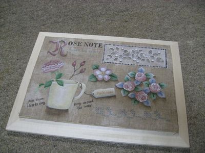 先月、tomichanとがんばって行ってきた広島でのトールペイントカーニバルその時受けた出口先生のセミナー作品が、やっと完成!!『バラのフレーム』です出口先生の手にかかれば、こんなにシックで落ち着いた色のバラが咲くのですね~出口先生の野ばらは描いたことがあるのですがカップ咲きのバラを描くのは初めてだったので花びら一枚一枚にシェードとハイライトを入れて花を表現するのは、ちょっと難しいかったです。でも今回勉強したので、あのバラのコレクションが描けるかな??そして、ここからちょっと愚痴っていうかこの前から私の胸の中で独り言のようにブツブツ言っていたこと。。。何ヶ月も前から楽しみにしていた大阪でのJDPAコンベンションいよいよ来週にせまってきました。関西でのトールのイベントは貴重で、とっても楽しみなのですがさあ、イベントの中味が見えてこない!!たくさんのペインターの皆さんのすばらしい作品の展示があるのはわかるのですがもう一つ私たちが楽しみにしてるのは、販売コーナー!多くのペイント関係のお店が出店するとは思うのですがその出店内容というか、販売品の紹介がイベントまで1週間を切ったのに、まだ何も紹介がない。。。トール業界が低迷していると嘆いているこの数年。。。こんなイベントの時に業界あげて盛り上げていかないといけないと思うのですがPRがちょっと不足というか、手際が悪いというか。。。このイベントのために先生方も新作の製作に精を出されていたと思います。せっかくがんばって作り上げた作品をもっと宣伝してもらわないとがんばった甲斐がないのでは。。。それと、開催3日間何回も行けるような人はいいけど限られた時間しか行けない私なんかはお買い物の予定を立てて、効率よく回らないといけないし遠方の友だちの分のお買い物もがんばらないといけないしデモも見たいけど、時間がわからないし。。。もっともっと言いたい、書きたいことがあるのですが。。。でも本当はブログでこんなこと書きたくなかったのですが。。。読んで気分を害したらごめんなさい。。。