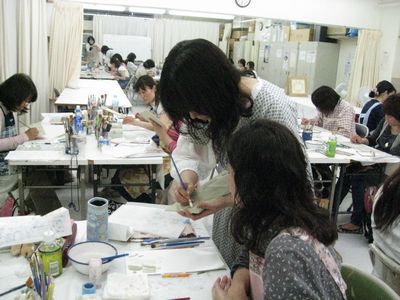 今日は、仕事でお世話になってる地区の公民館でトールペイントの講習会を開催しました先月末に第1回目をしたのですが、その続きの二日目教材は、友だちのtomichanデザインの「Welcome ワンコ」のキットです私の職場の事務室にトールをちょこっと飾ってあったところ「教えてほしい~」の声が。。。中には10年くらい前に習っていたけど、通うのが大変なので、辞めてしまった方も。。。今まで、夏休みに小学生にちょこっと教えたことがあるのですが大人の方に教えたことがないので、躊躇していたのですが思い切って募集をしたところ6名の方が申し込んでくださいました課題の作品を選ぶにあたって1日でできる「お試し」の簡単にできる作品、ってのも考えたのですがちょっと大変でも「作り甲斐」のある作品を何回かにわたって作ってみようってこの「Welcomeワンコ」のキットは、そんなに難しい描き方をしないのですが4つのパーツに分かれていて、ちょっと初めてには大変かなって思ったのですが、何回かがんばれば大丈夫かなって。。。そのラブリーな課題に、参加してくださった方は魅了されたようで2回とも9:30~16:00そして、今日は17:00まですっごいがんばってくださってますそして、今日は、中学1年の女の子が見事完成させてニコニコ顔で帰っていきました。あとの方もあと1回で、おそらく完成させられるでしょう。。。私なんか教えることの経験がないものが、すっごい大胆なことをしてしまい。。。つたない説明で申し訳なく、そしてまだまだ未熟者のデモをお見せすることになり。。。ちょっとは、トールペイントの普及に貢献できたかしら?「普及」なんて大それたことはできなかったかもわかりませんがちょっとは興味を持っていただけたような。。。「教室」という定期的な開催は無理ですがまた機会があればまたやってみたいような。。。(まったくのボランティアで)でもまずは、全員の方が完成できるように最後までご指導しないと~!!