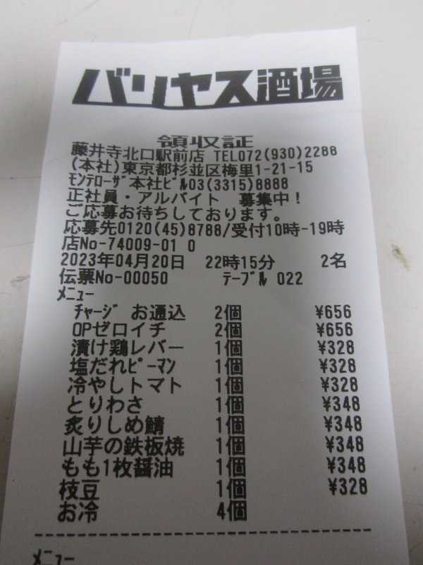 本日のサービス品いろいろ〈居酒屋やっちゃば 吉川店(埼玉県吉川市)〉