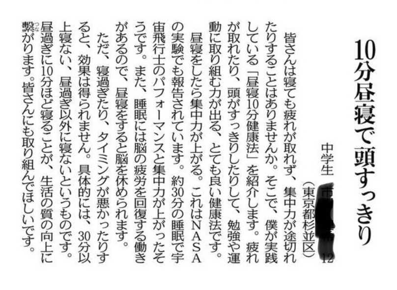 これはもう20年以上実践しているよ。しかし昼寝時間は人によって異な…