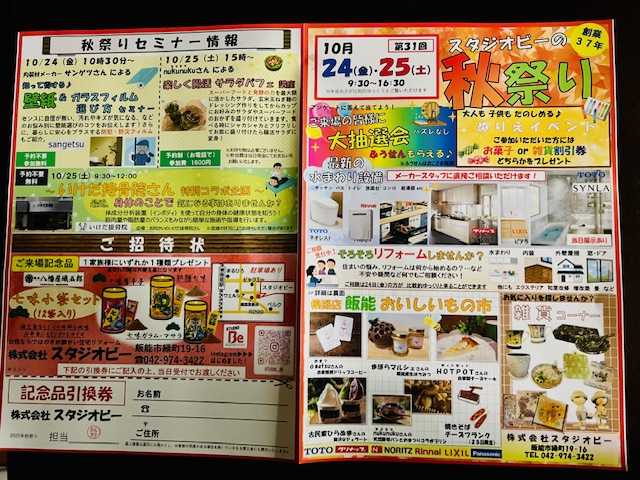 スタジオビーの秋祭りのちらし。 昨日、夫が先日のリフォームの補助…