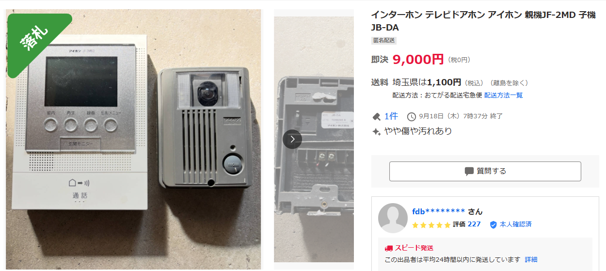 251001:ドアホン購入JB-DA・ヤフオク10000円 9/18thu