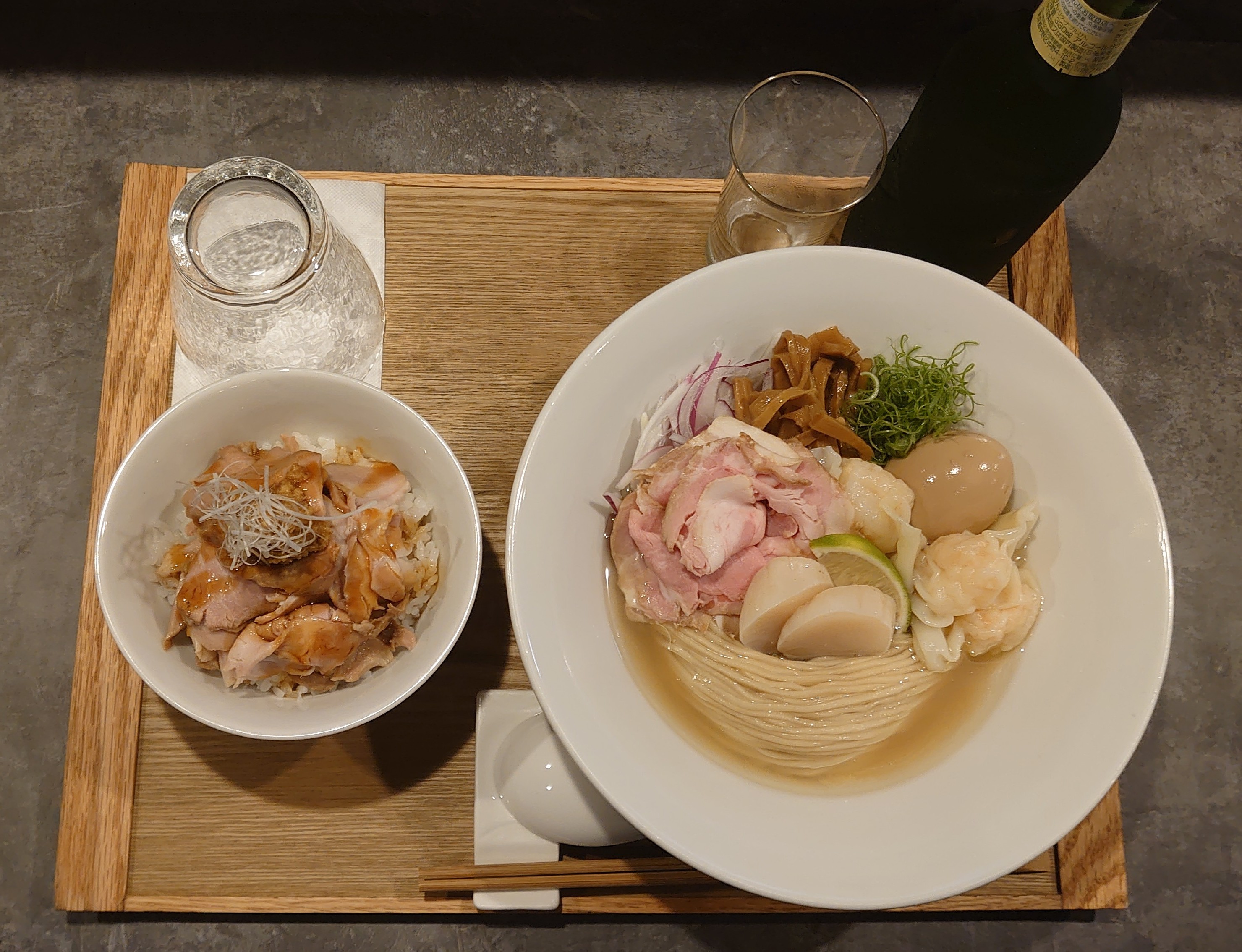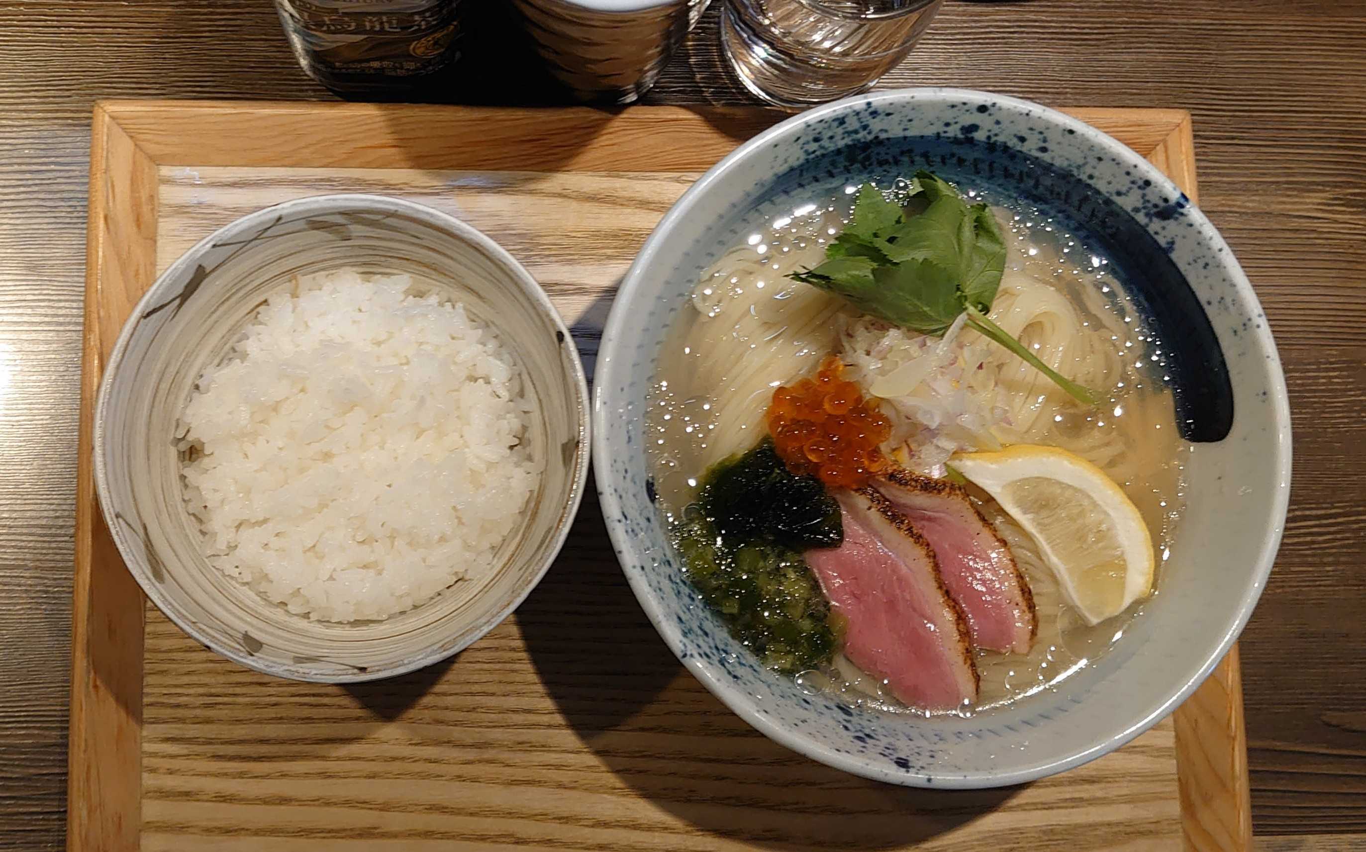🟪鴨出汁中華蕎麦 麺屋yoshiki 鴨と貝の冷やしそば(塩)+ご飯(つや姫)