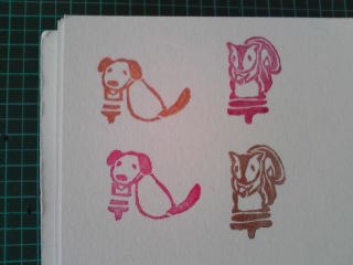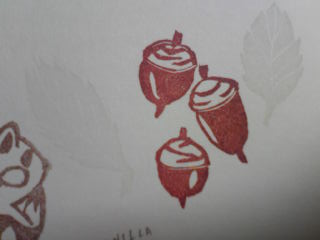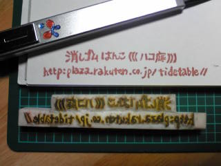 最近何をやってるのだか?色んな事始めたばかりなのに(まずい!)PC前にはなかなか座れなくなったこの頃。でも、昨日久々に?な気分で、むしょうに彫りたくて残りの破片で、彫った(〒 イヌ・リス)はんこ。黒ほるナビを使ってみて作ったけど、怖いくらい手の感覚が、忘れてきてるのか、黒ほるナビが、恐ろしくクッキーみたいな彫り心地に感じた。前からだっけ?今回、私にしては、ちょっとチイサ目・・・ 2×3 3×2 です。本来、大きめな絵ばかっりなので、繊細な部分が下手です。(オッサン顔リスになってしまいました。笑)