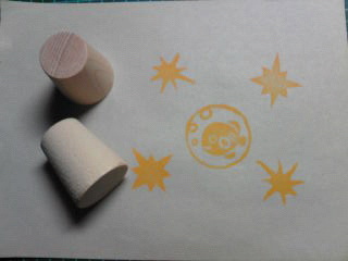 この間買った木の持ち手に合わせたサイズの魚ちゃんと、消しゴムはんこの端切れで作った効果形です。この木が可愛くて、持ち易そうでもあり、つい買ってしまったもの。だけど、はんこ印が捺せないのが難。以外に、ブチブチ捺せそうなアイテムで活用出来そう♪でした~。