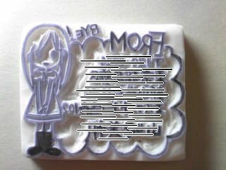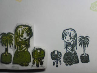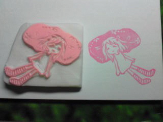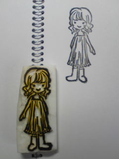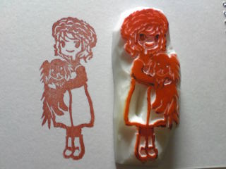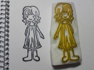 今日は、妹がやって来て、しばしの時間(3時間くらい?)一緒になにか彫ろうと、前にトレースしておいた子にチャレンジ!■着せ替え?重ね捺しはんこの女の子彫りました~。まずベースになる女の子。本体:縦6.5 横3センチあ、目が左右対称じゃない!!! ★後日、頑張ってこの子に洋服を作ってあげたいです♪ 今のままじゃなんか↑肌寒そうですよねー笑。しかし、最近妹は、どんどん上手になっていくー。今日はポストカードもらいました(*′ο`)_それが、上手いのなんのって、可愛かったから、嬉しかった!うはー、私もなんか頭想像膨らましてヽ(´ー`)ノ 可愛くなる様にデザインしたいぃぃぃ。笑。